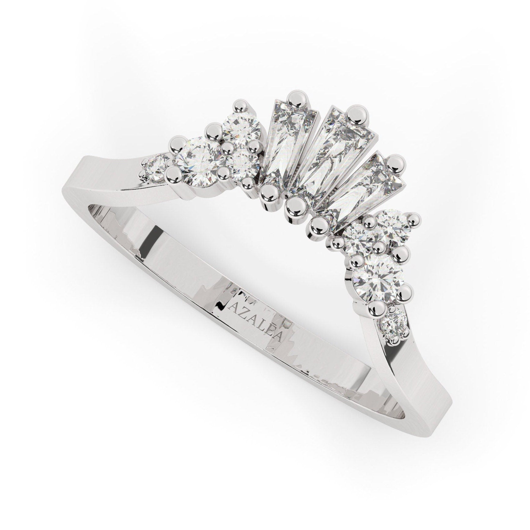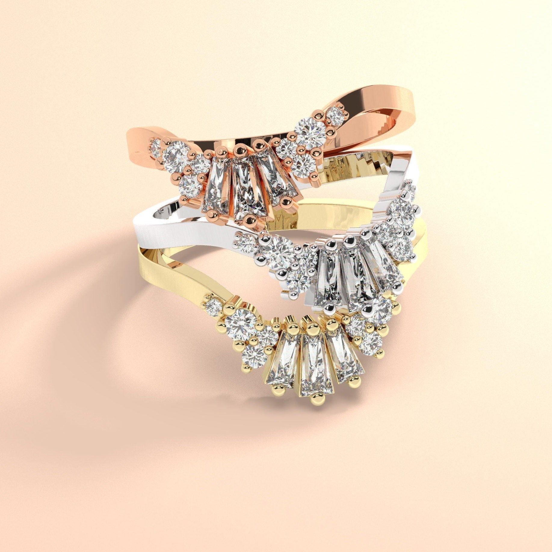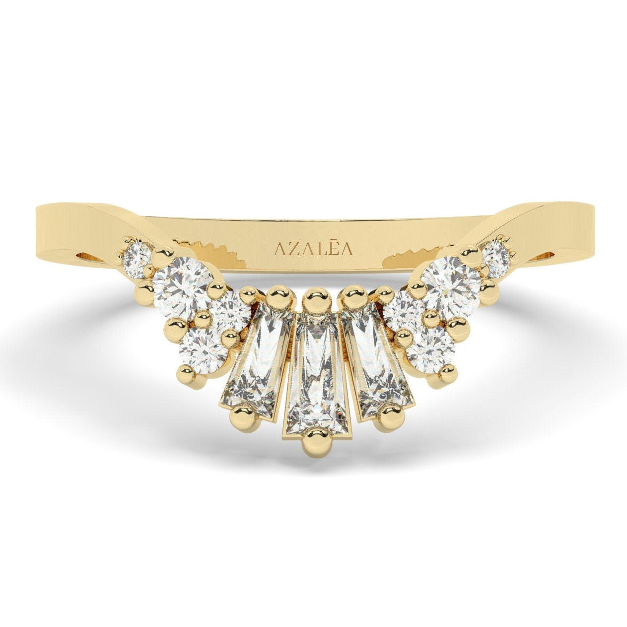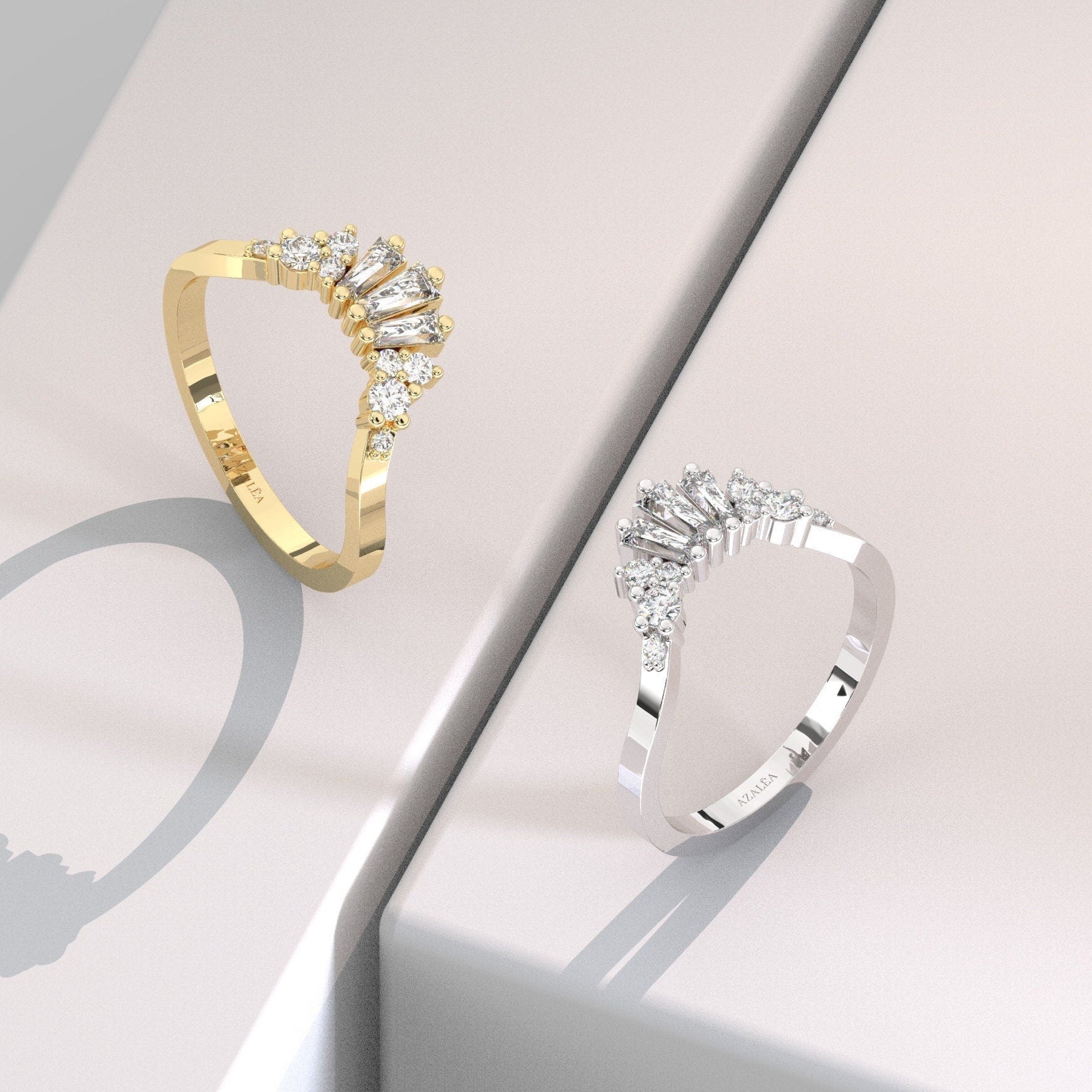14k Gold Curved Baguette Wedding Band / Diamond Stackable Ring / Crown Ring / Anniversary Birthday Bridal Gift / Engagement Ring