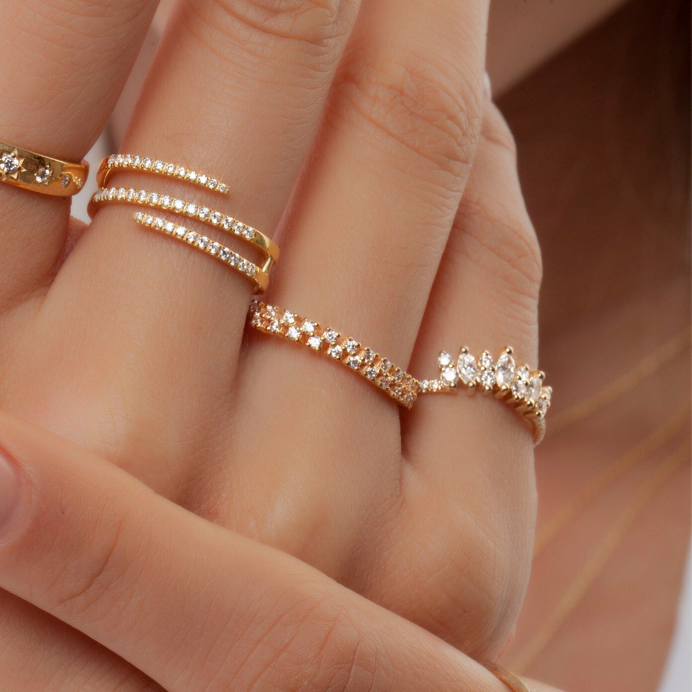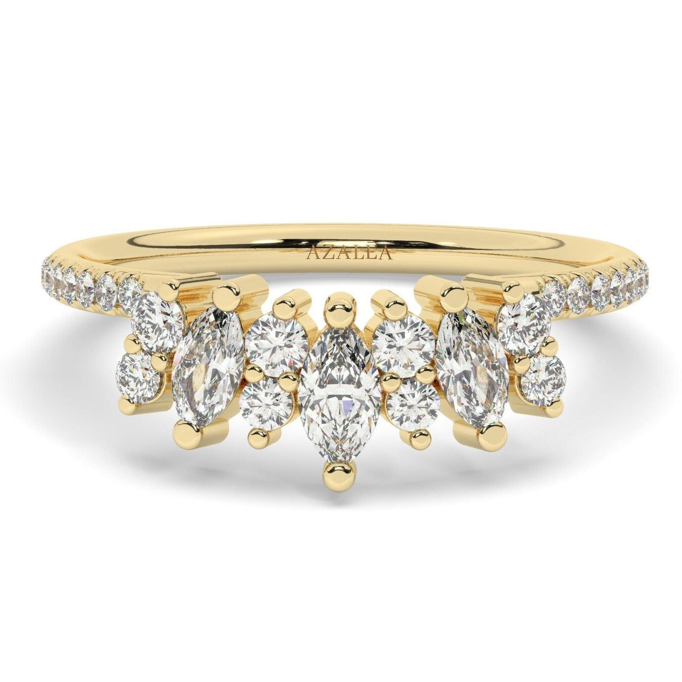 14k Gold Curved Marquise Diamond Wedding Band / Crown Diamond Stackable Ring / Engagement Ring / Natural & Lab Diamond Options