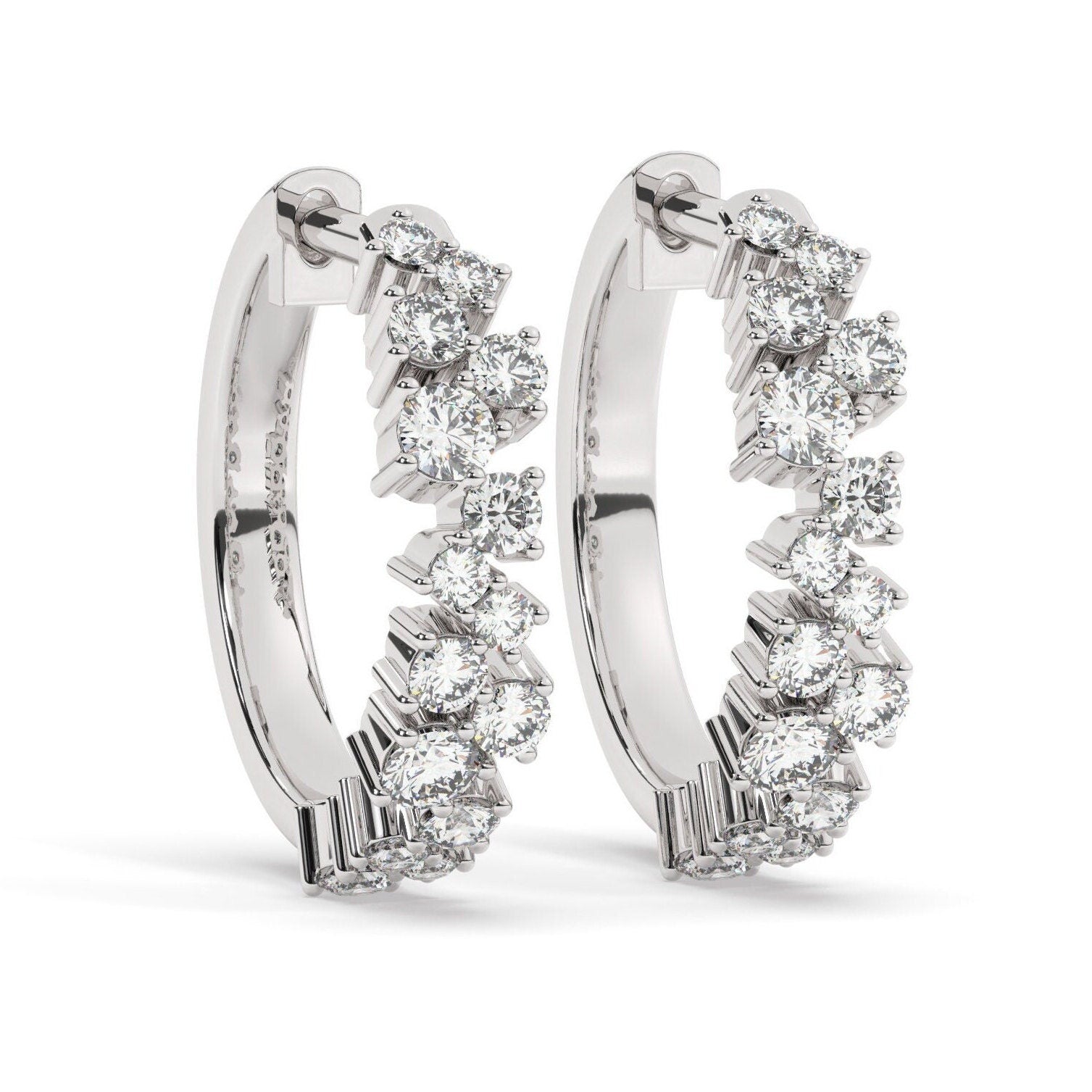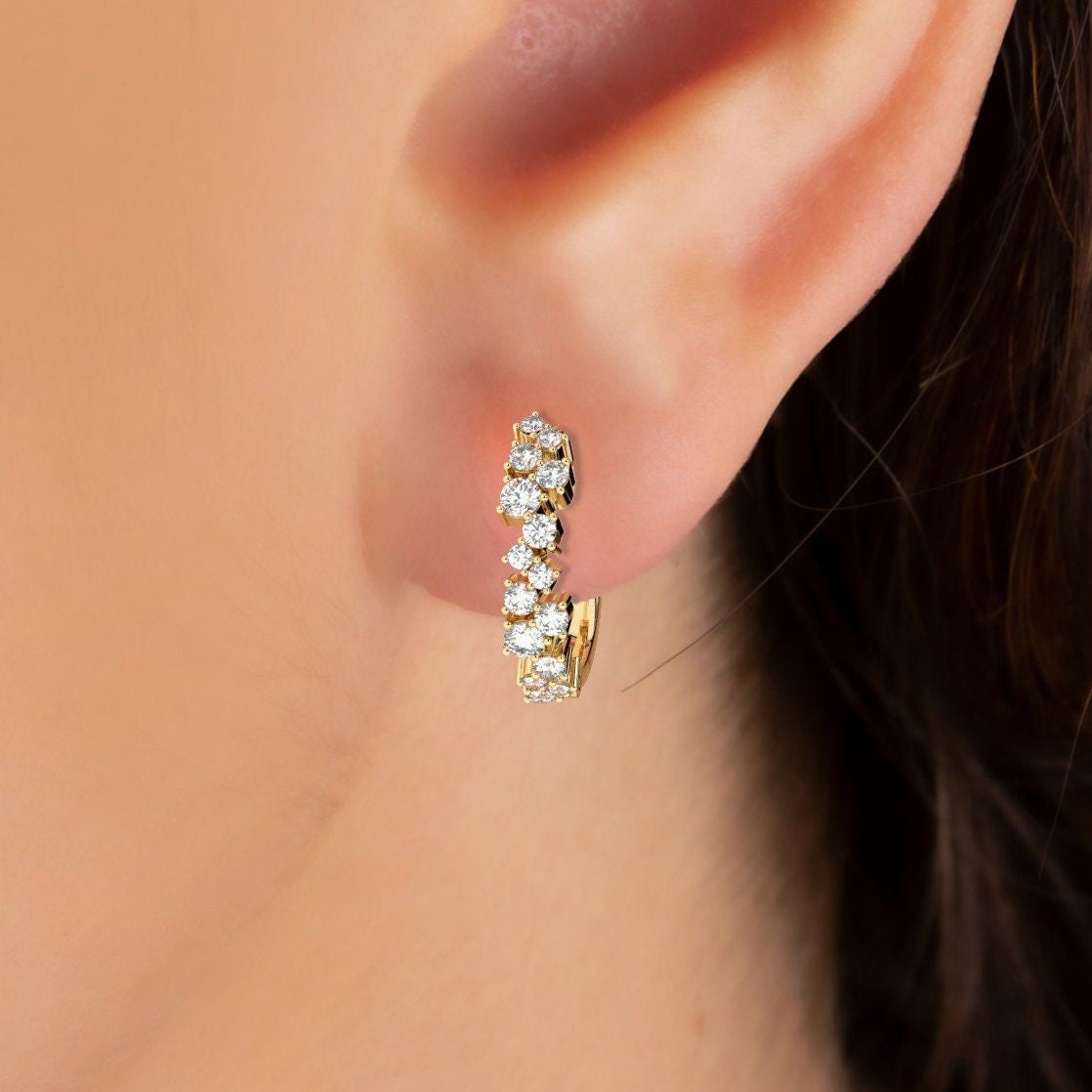 14k Gold Diamond Cluster Hoop Earrings: Dainty Huggie Style