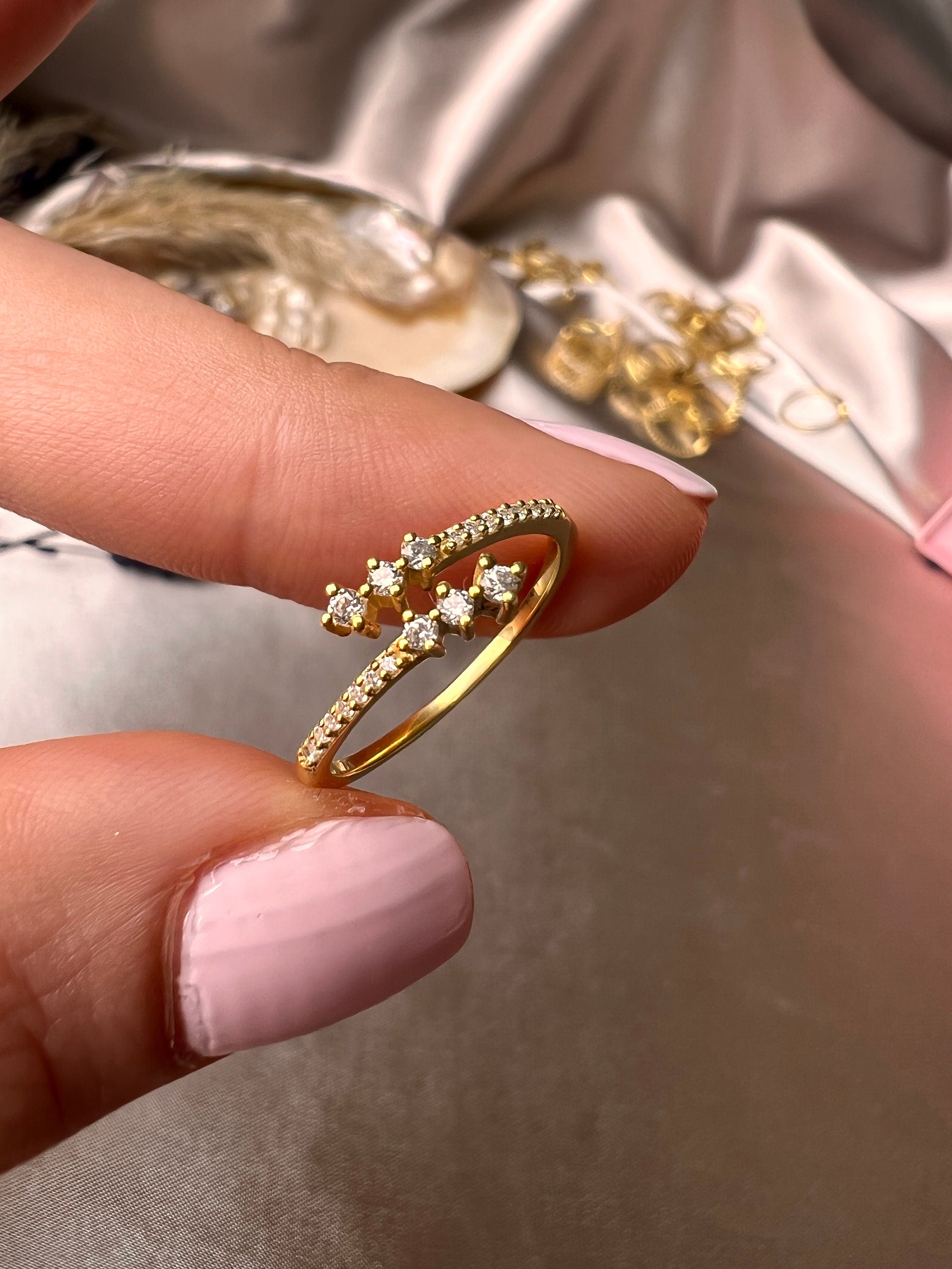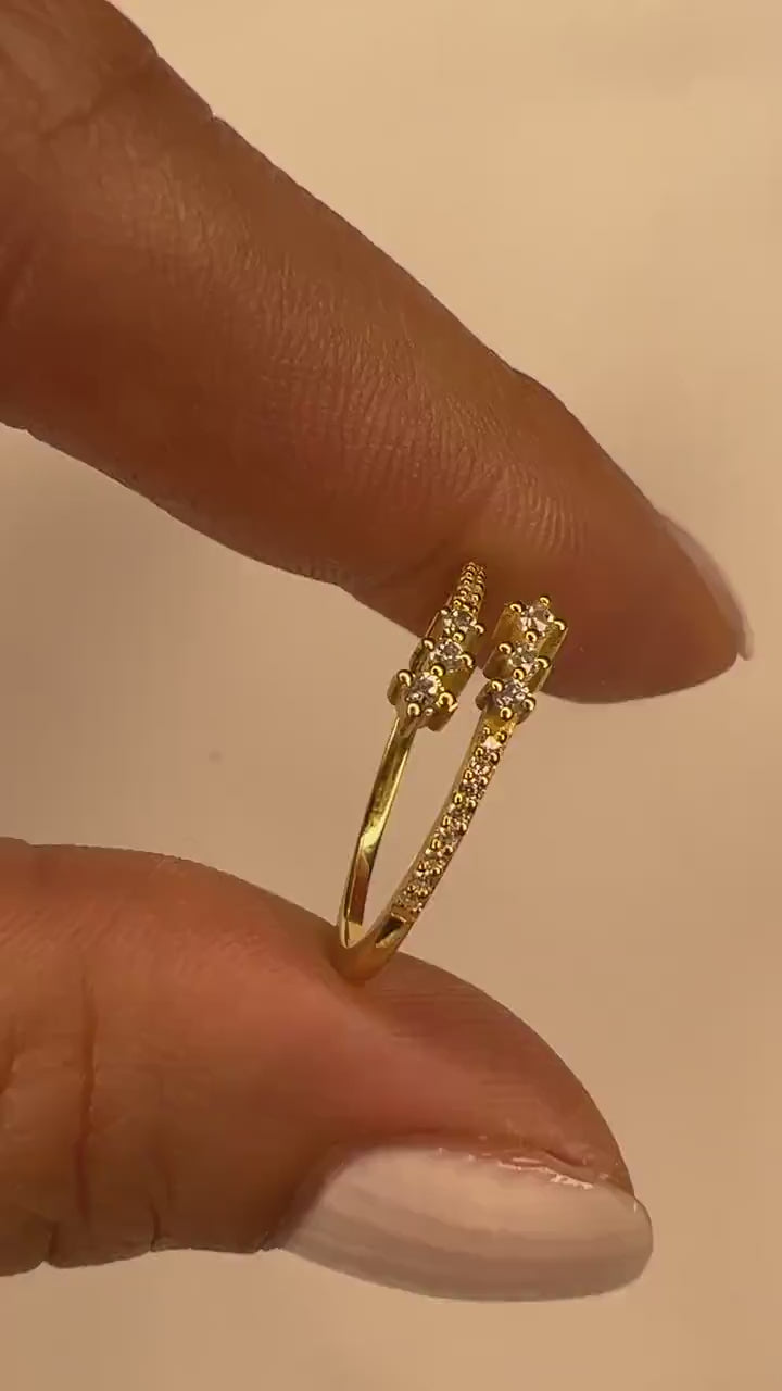 14k Gold Diamond Cuff Ring / Anniversary Ring / Wedding Band / Stacking Ring / Bridal Gift / Birthday Gift / Diamond Spiral Ring