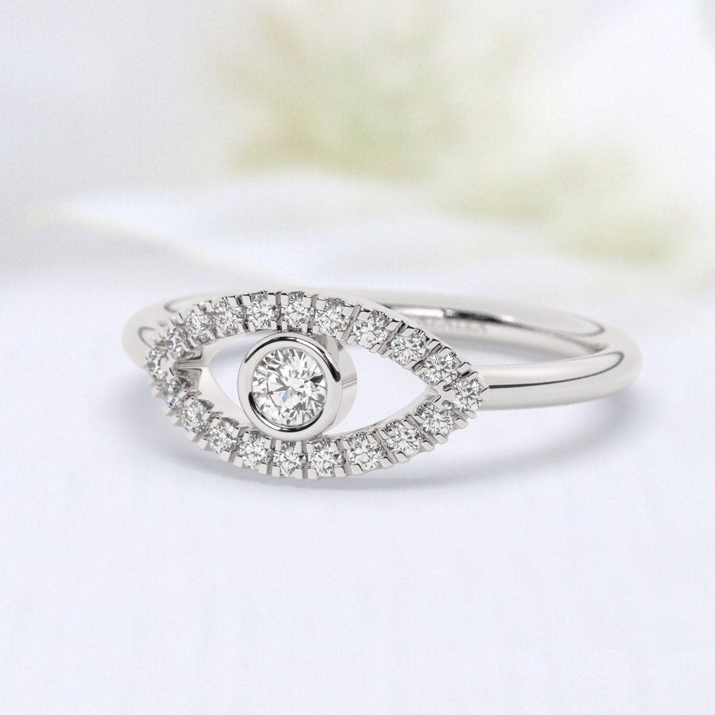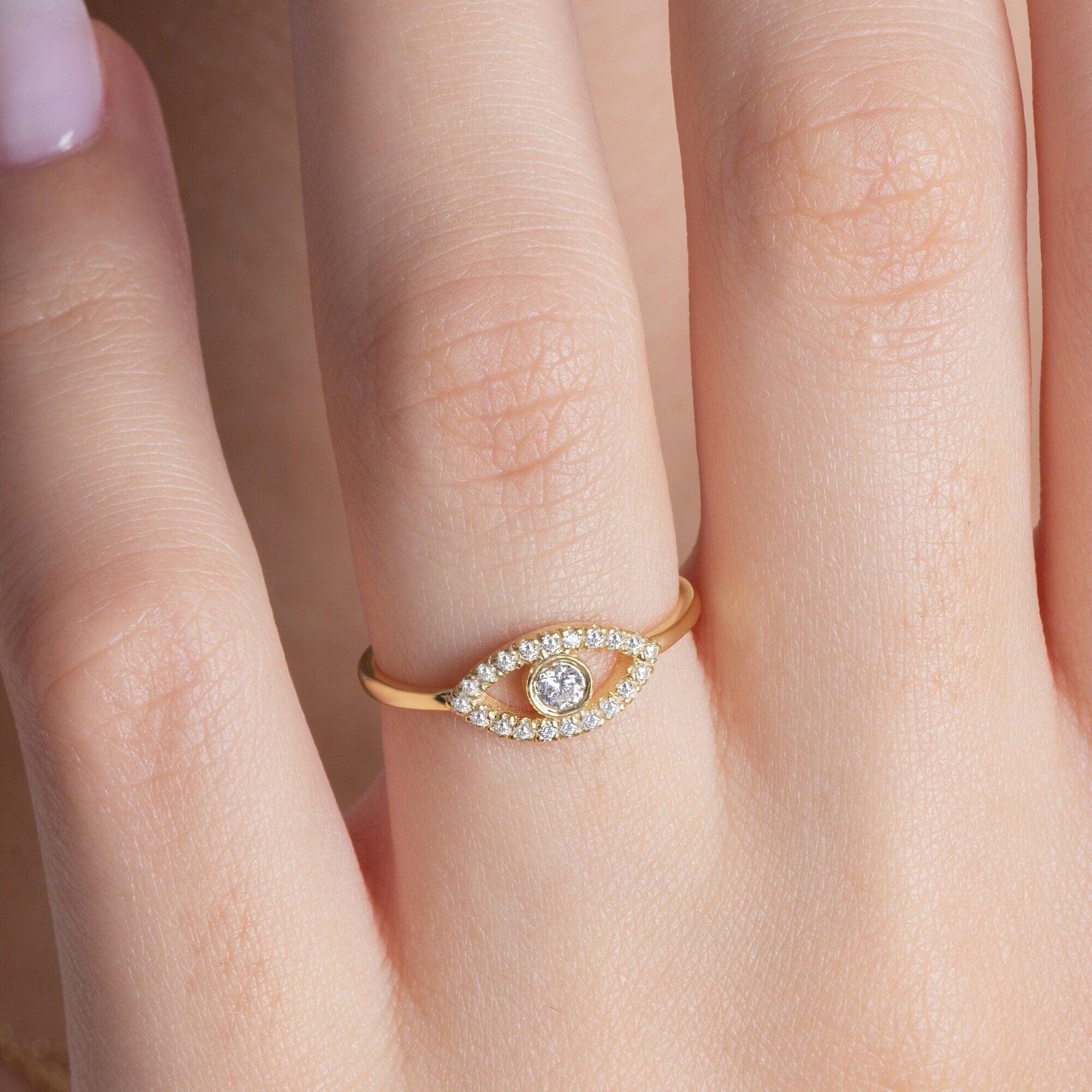 14k Gold Diamond Evil Eye Ring: Stacking Protection Ring