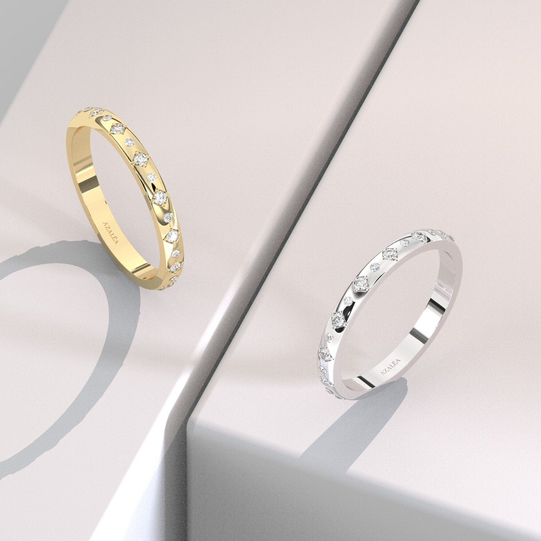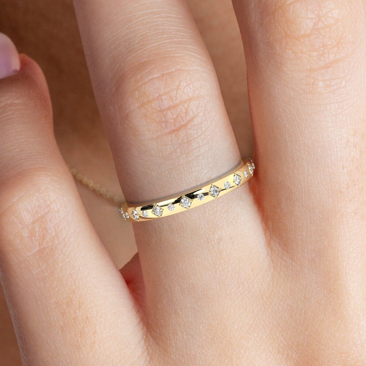 14k Gold Engraved Diamond Eternity Wedding Band / Engraved Diamond Stackable Ring / Engagement Gift / Anniversary Gift / Minimalist Ring