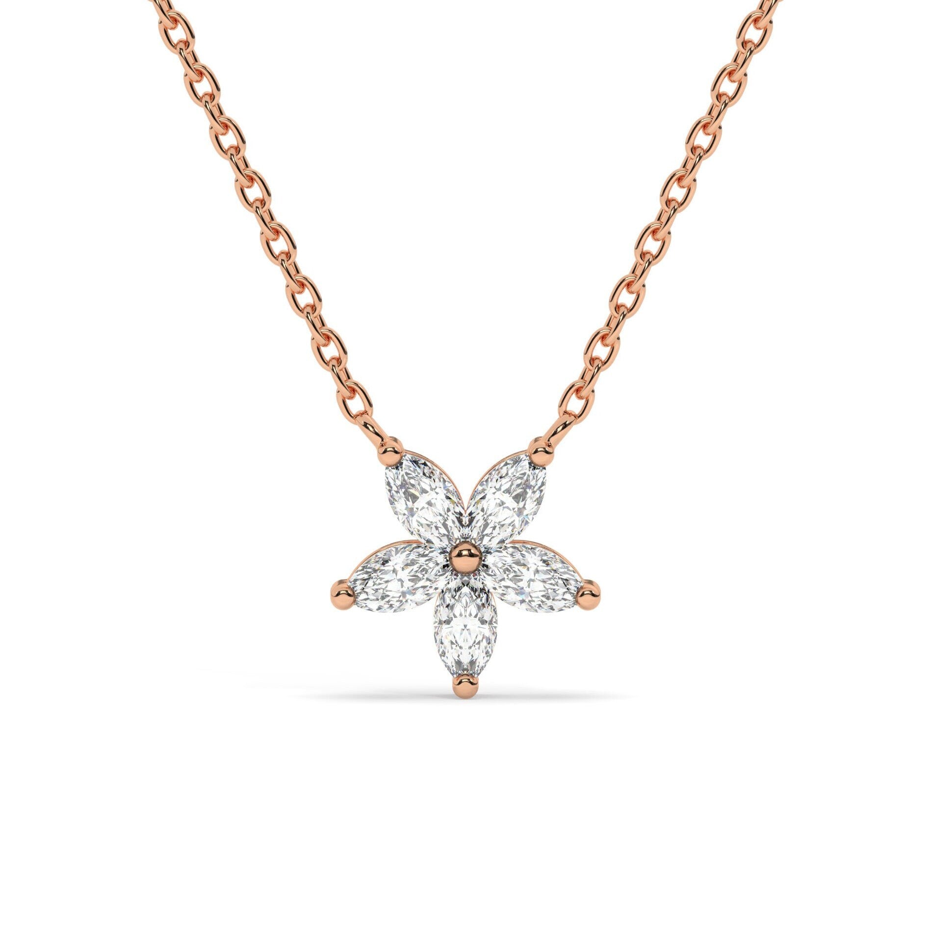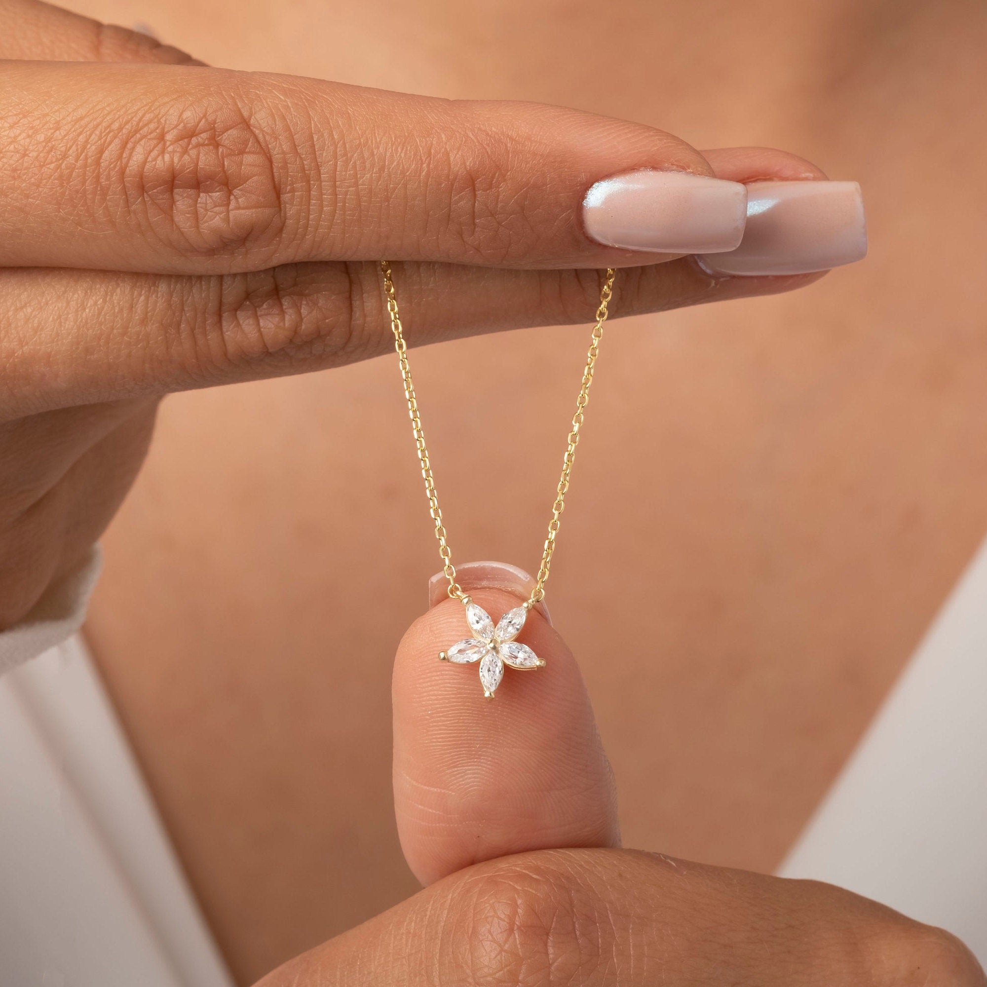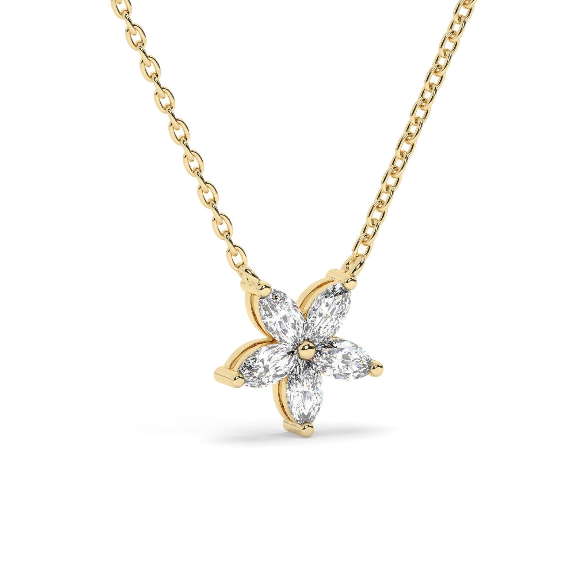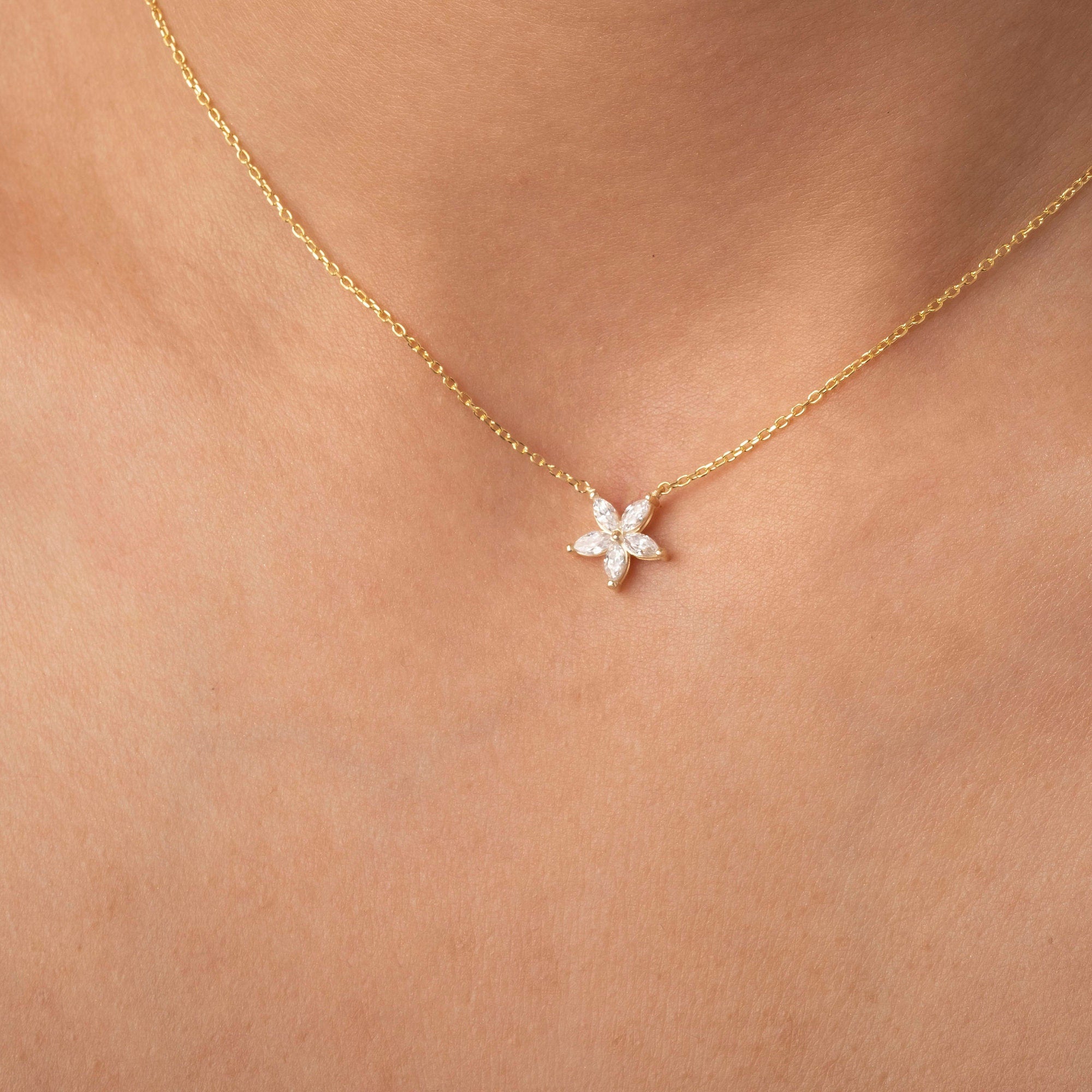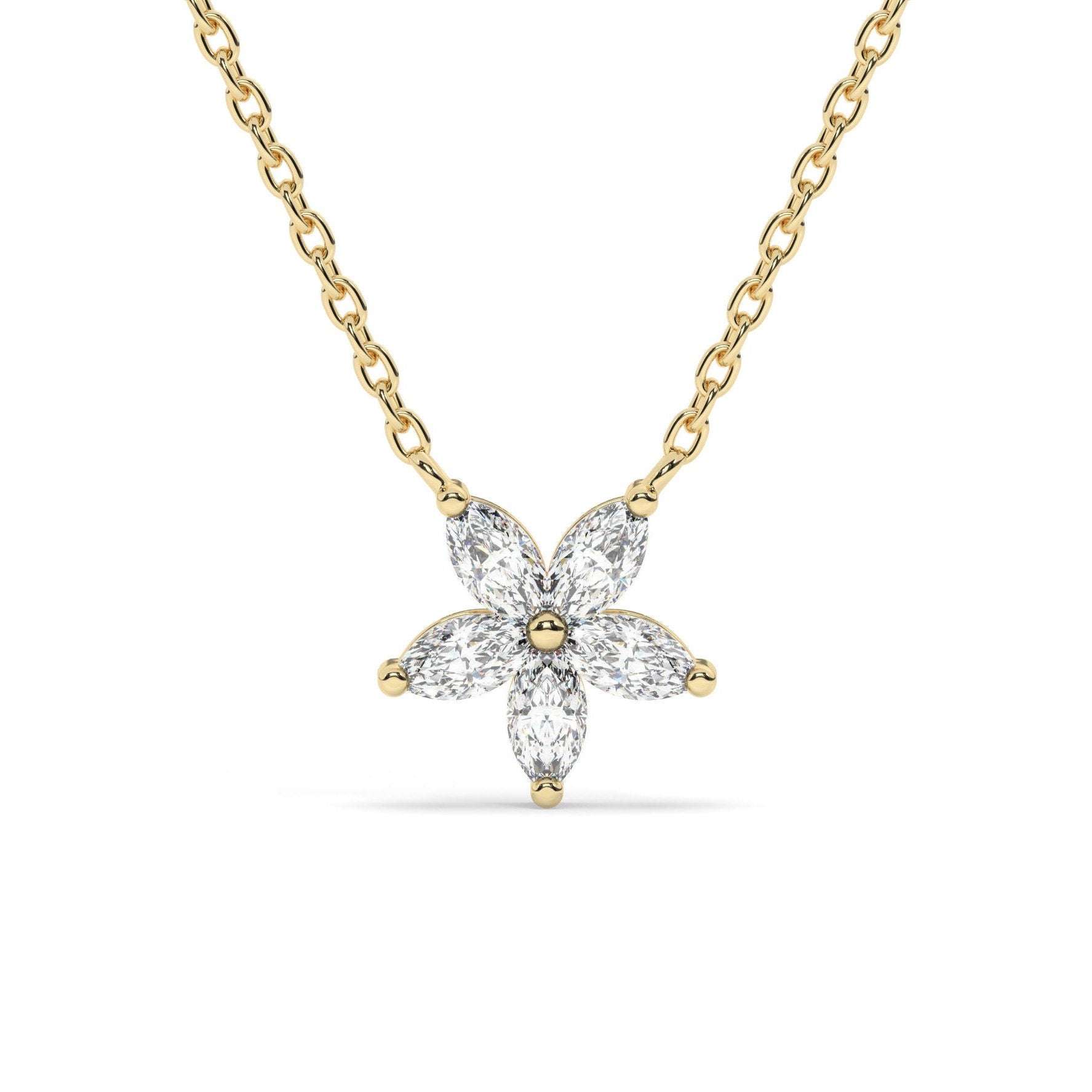 Enhance your style with our enchanting 14k Gold Flower Diamond Necklace. This exquisite piece features delicate flower petals adorned with sparkling marquise diamonds, creating a stunning pendant. It's a perfect gift for women or bridesmaids, symbolizing beauty and grace. Order now and bloom with elegance and sophistication!