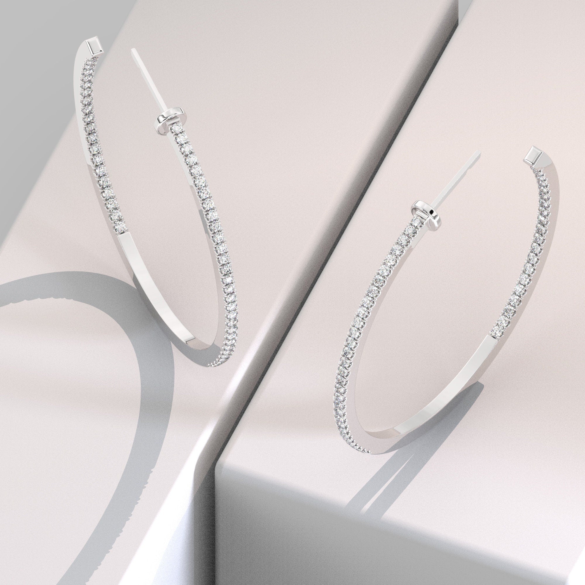 14k Gold Pave Diamond Hoops / Large Hoop Earrings / Diamond Inside Out Hoop Earrings / Anniversary Birthday / Bridal Wedding Gift for her