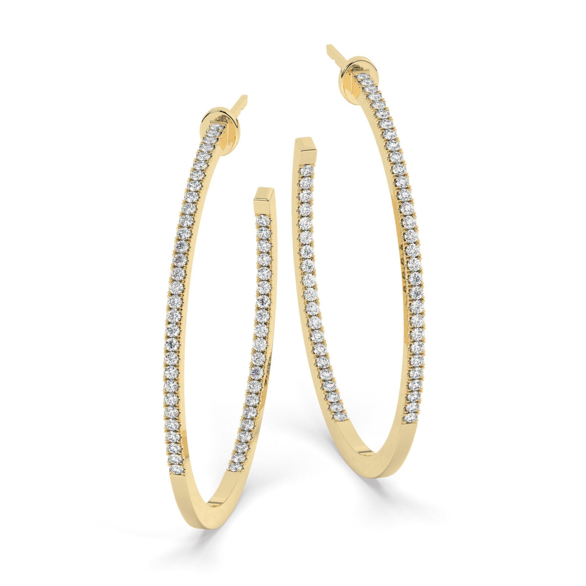 Upgrade your style with these stunning 14k gold inside out diamond hoop earrings. Expertly crafted with high-quality materials and sparkling diamonds, these earrings are perfect for any occasion.