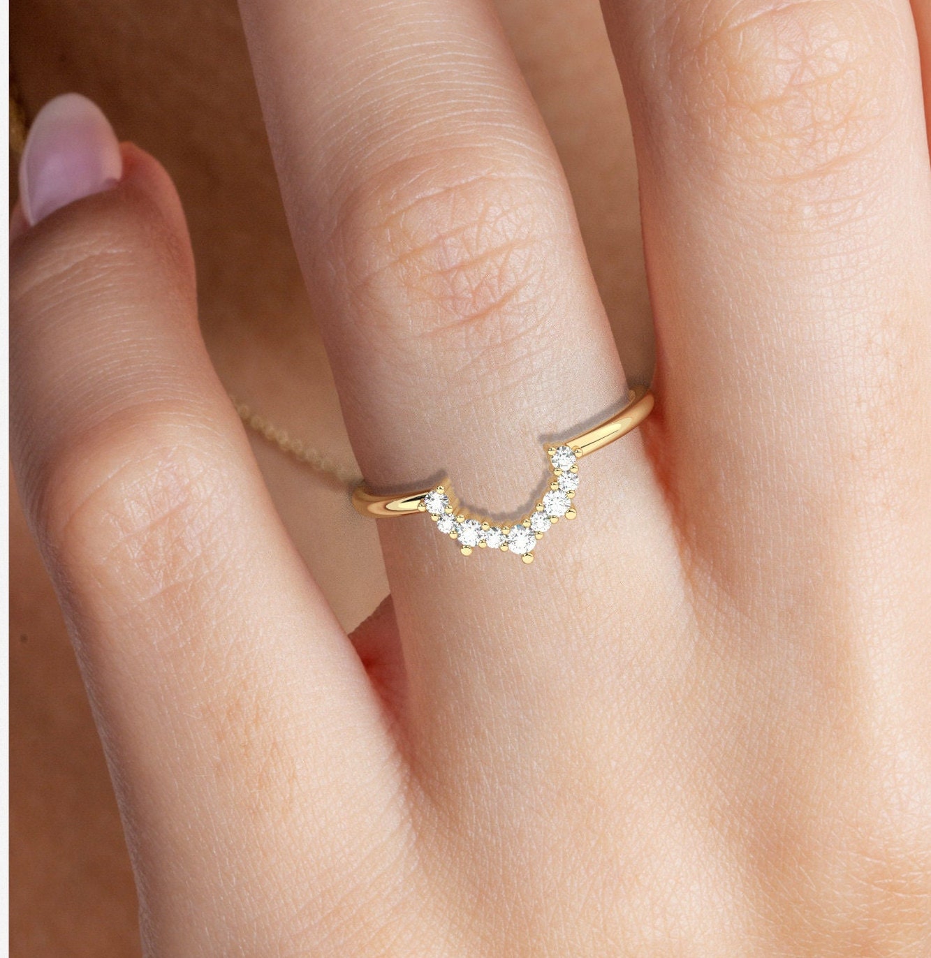 14k Petite Nesting Ring, Diamond Crown Ring, Engagement Stacking, Curved Ring, Bridal Jewelry, Engagement Anniversary Gift, Matching Rings