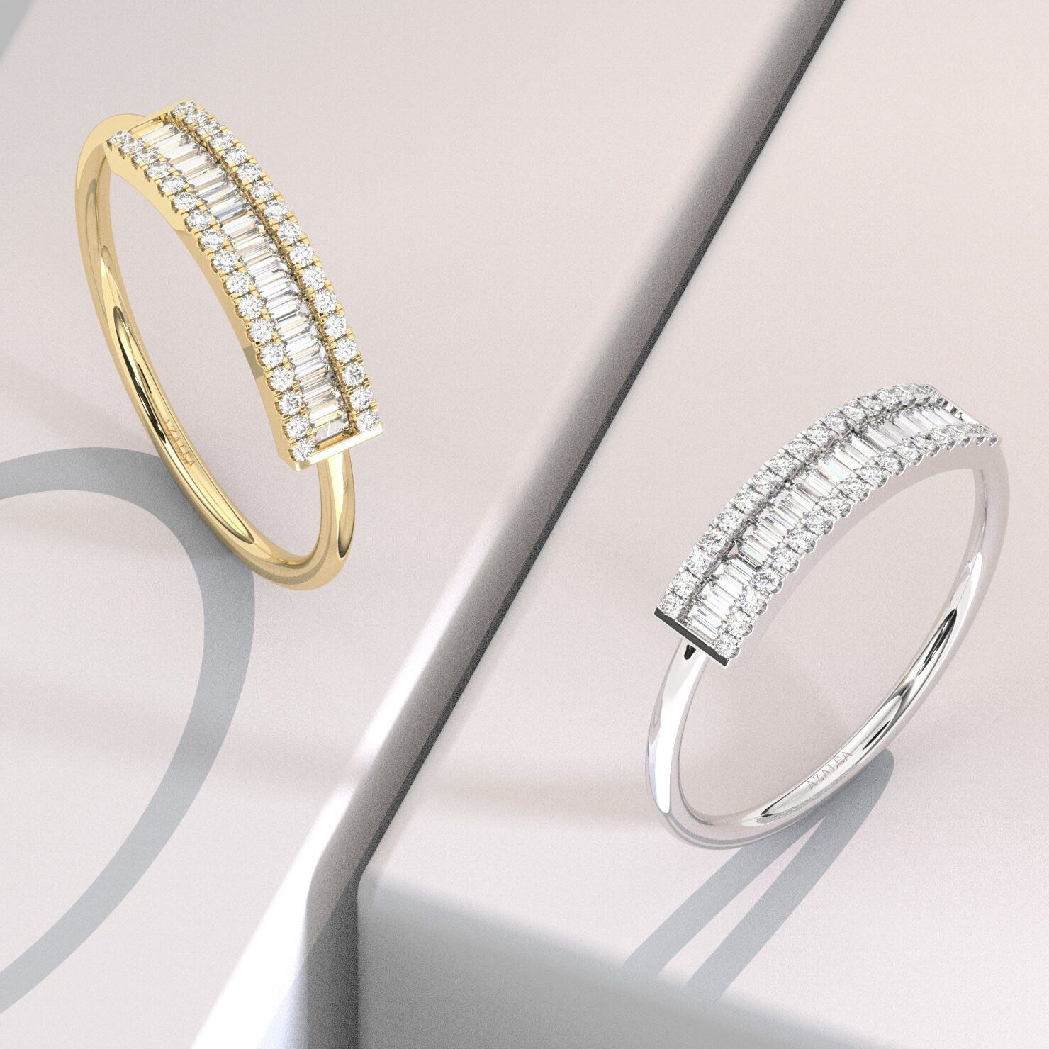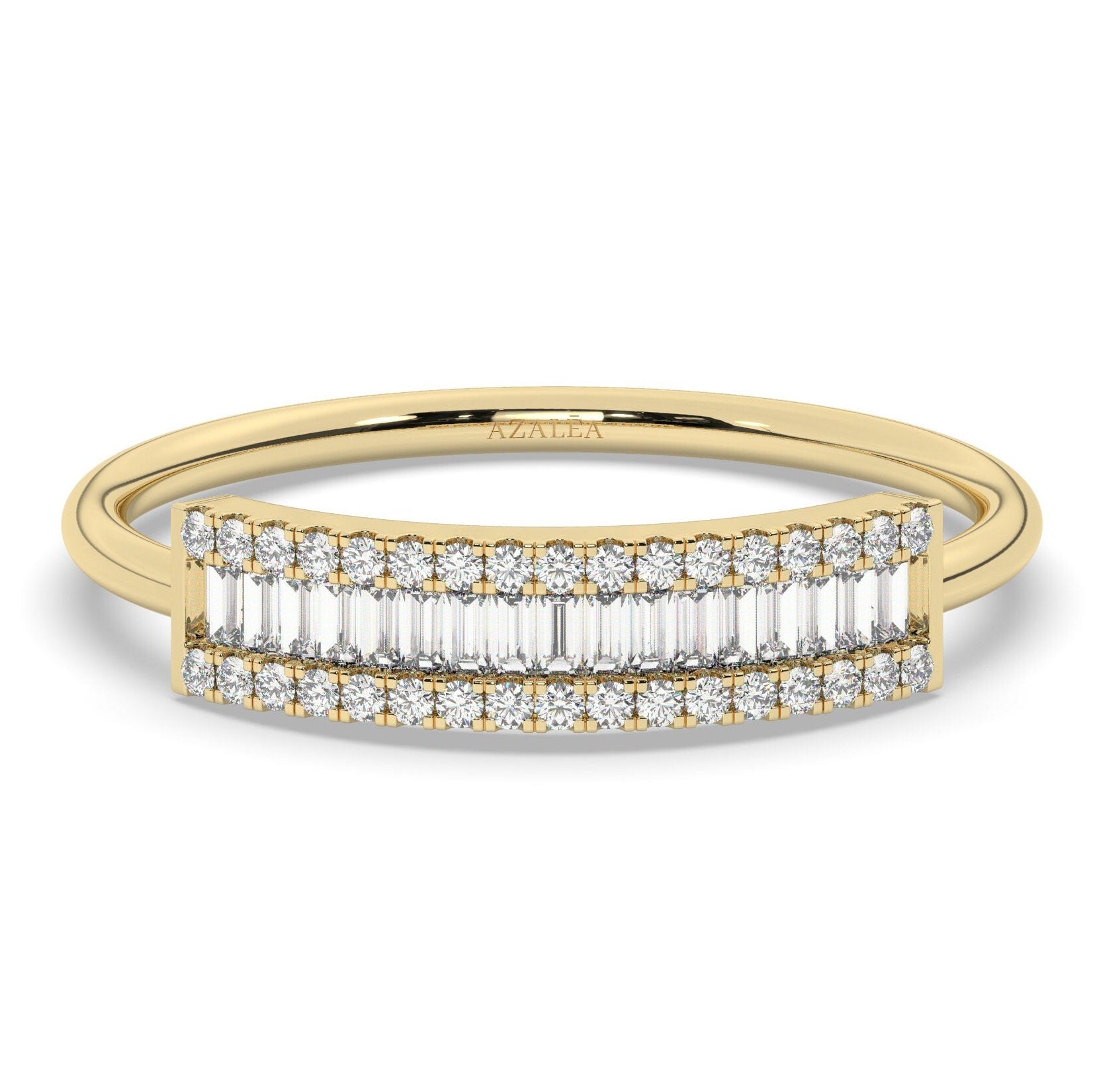 14k Solid Gold Baguette Diamond Wedding Band – Dainty Set Half Eternity Ring, Fine Gold Jewelry Gift, Stackable Ring for Her