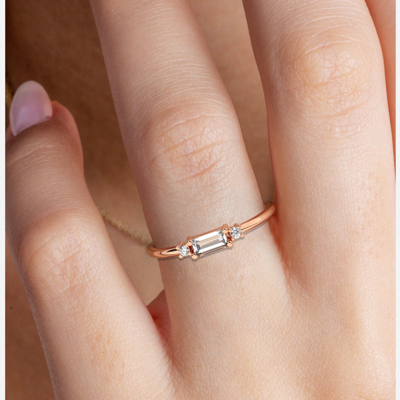 Baguette Diamond Stacking Ring / 0.35 CT 14k Gold Baguette Diamond Wedding Ring / Anniversary Gift / Engagement Ring/ Diamond Gift Idea