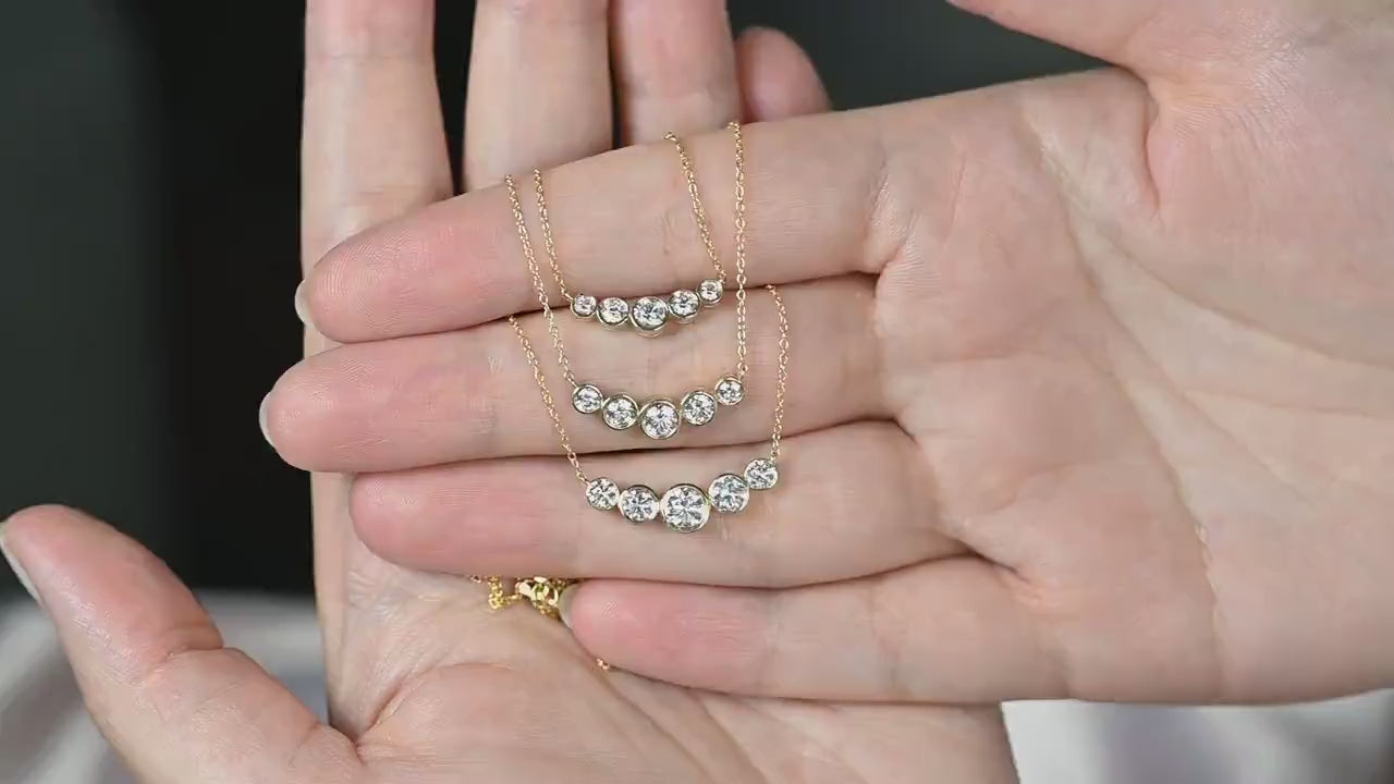 Curved Graduated Bezel Necklace / 14k Curved 5 Stone Bar Necklace / Minimalist Diamond Necklace / Wedding bridal anniversary gift for her